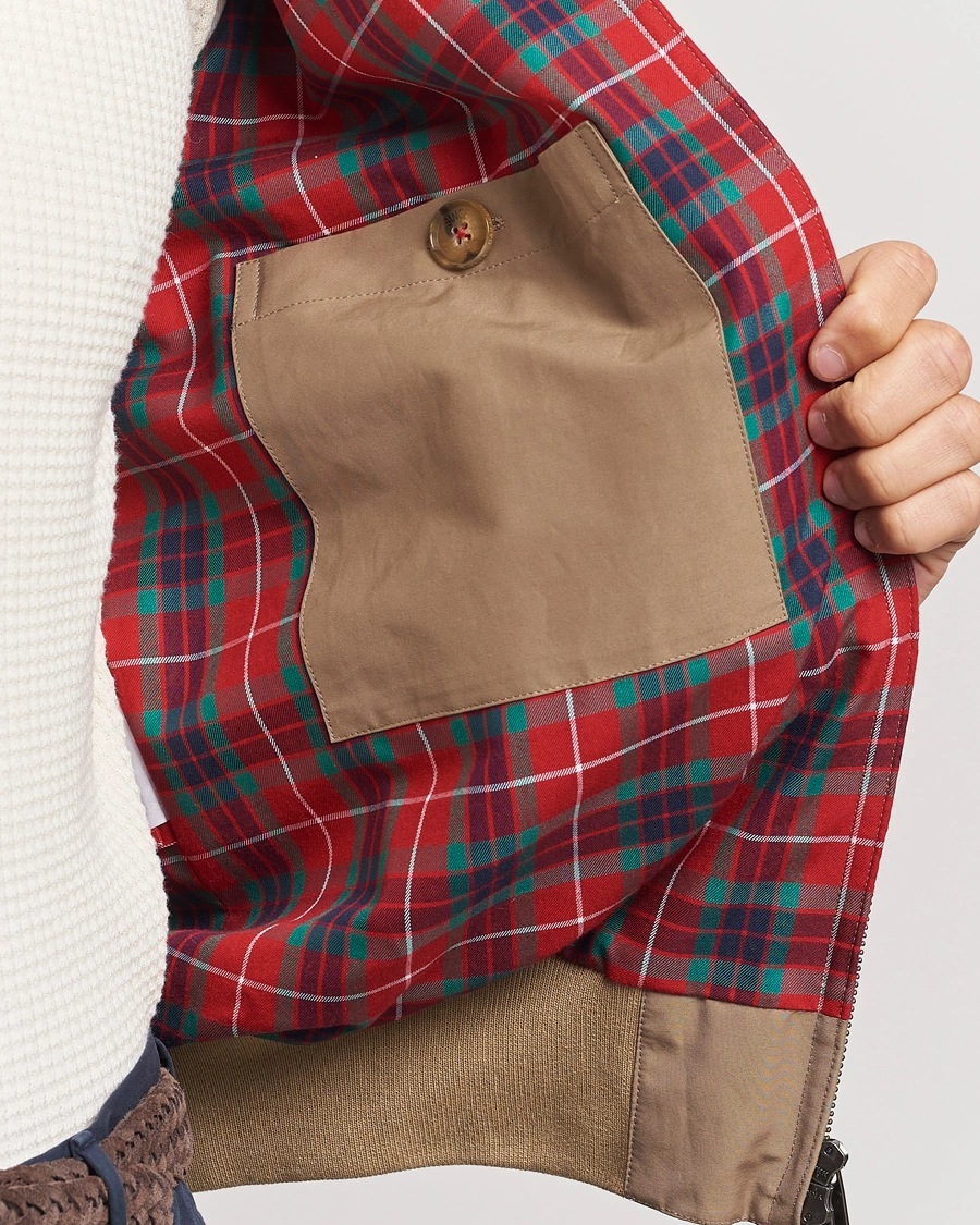 Jacket from Baracuta. The G9 Original Harrington is a timeless classic characterised by its design, signature Fraser Tartan lining and double button collar. The Harrington jacket from Baracuta was created in 1937 and has since become an iconic part of the fashion world.