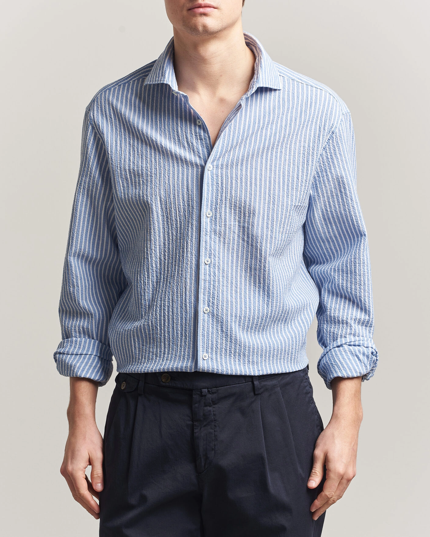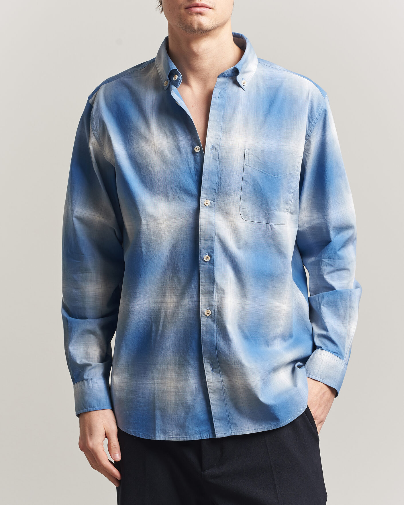 - Button-down collar.