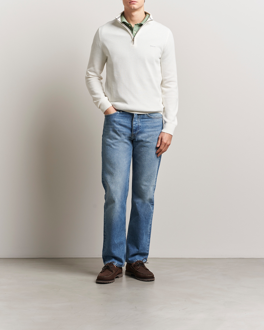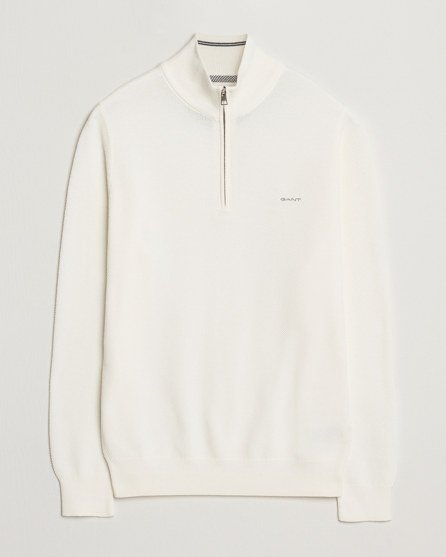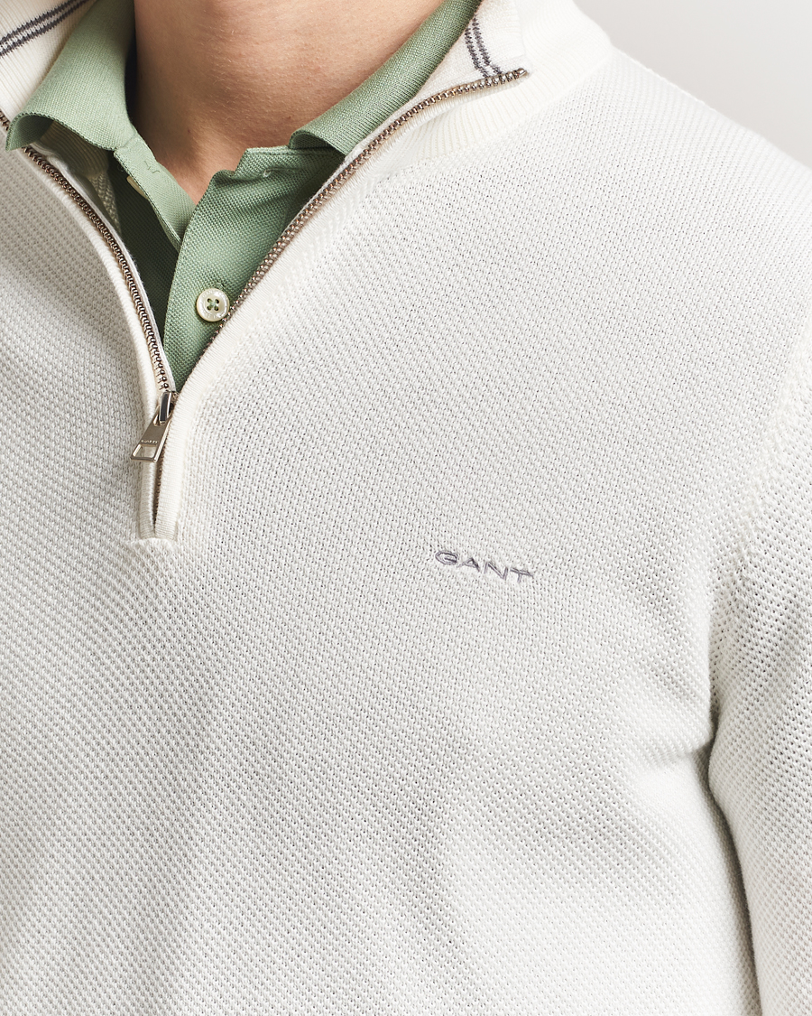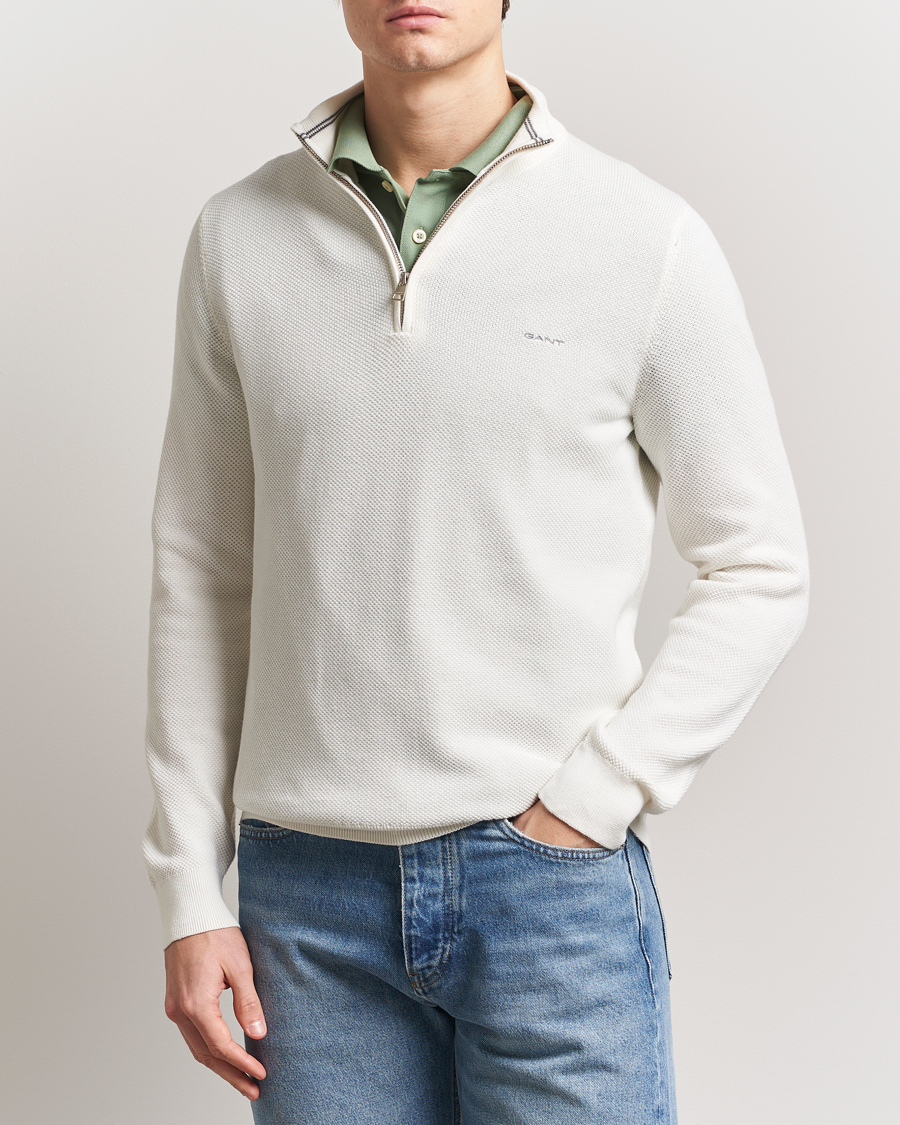 Cotton Pique Half Zip Eggshell