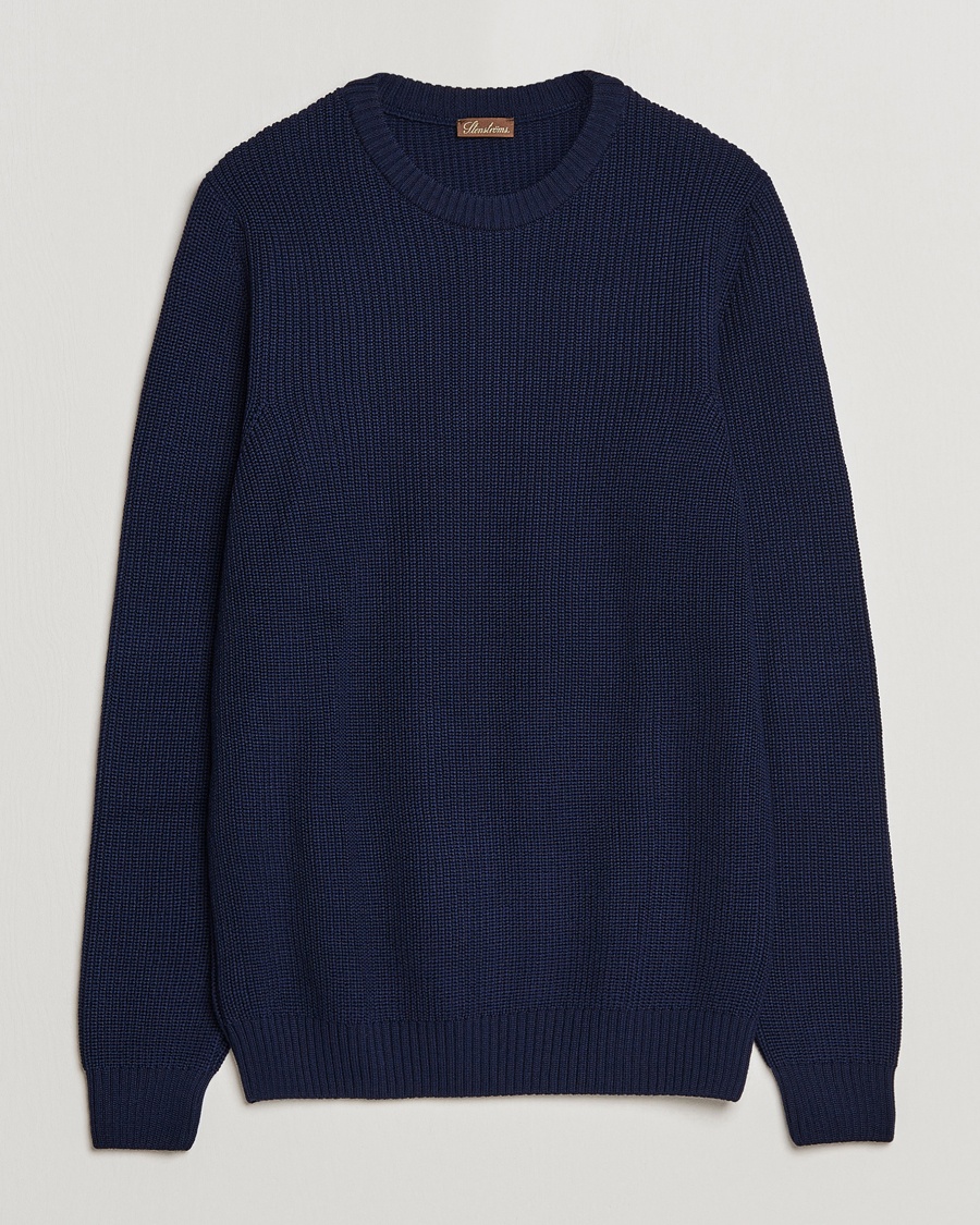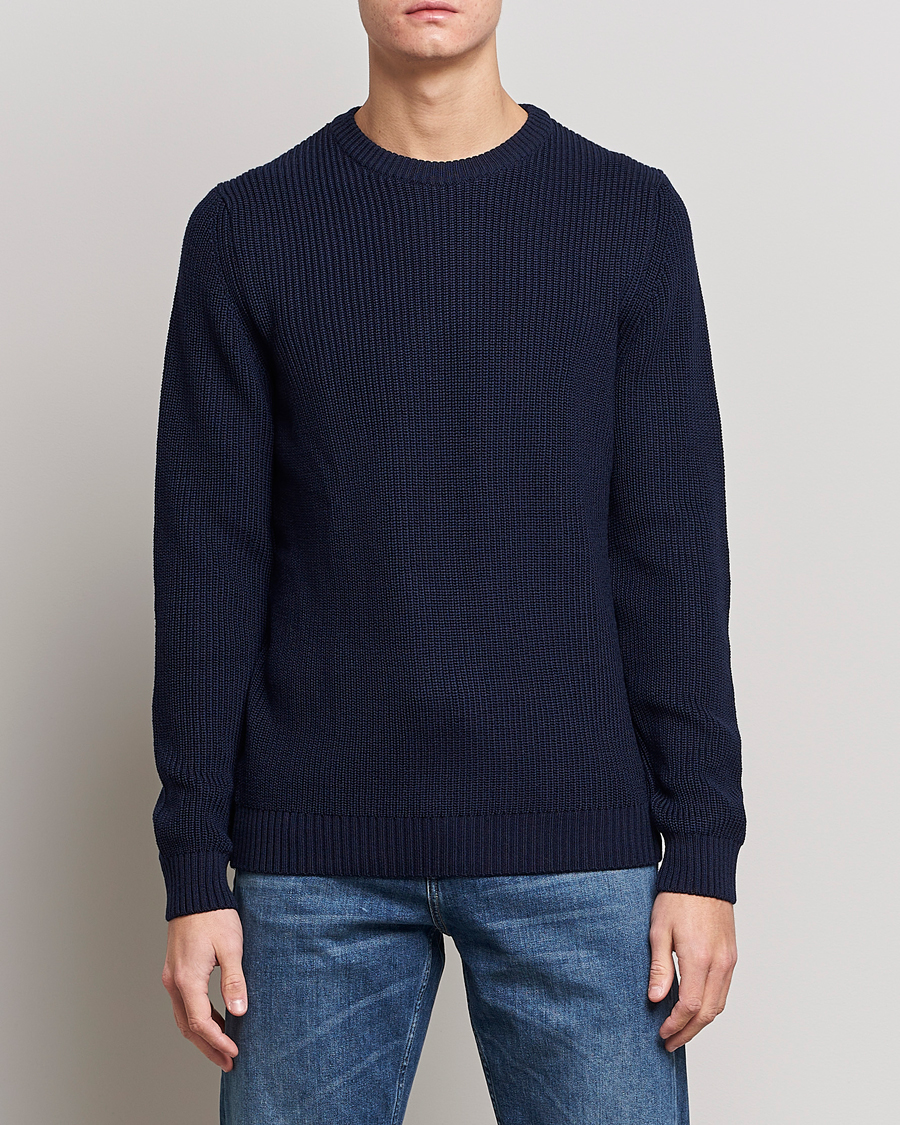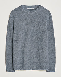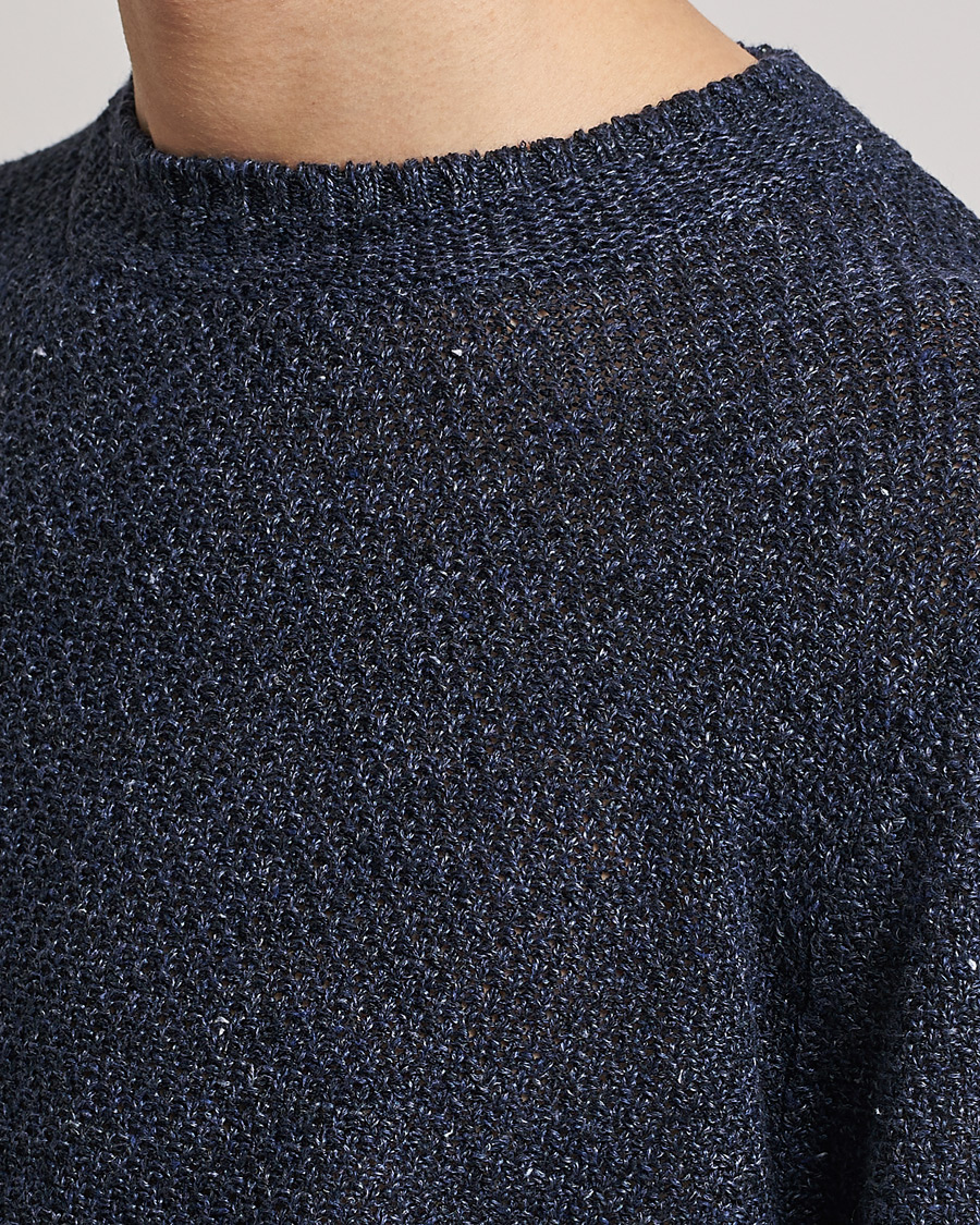 Men | Sweaters & Knitwear | Inis Meáin | Moss Stiched Linen Crew Neck Dark Blue