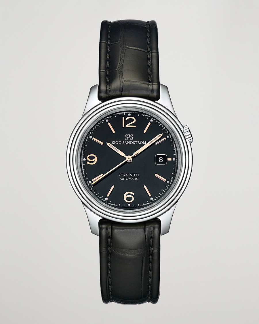 Men | Sjöö Sandström Royal Steel Classic 41mm Black and Black Alligator | Sjöö Sandström | Royal Steel Classic 41mm Black and Black Alligator