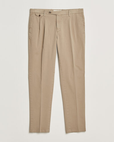 Men | Trousers | Briglia 1949 | Easy Fit Pleated Cotton Stretch Chino Taupe