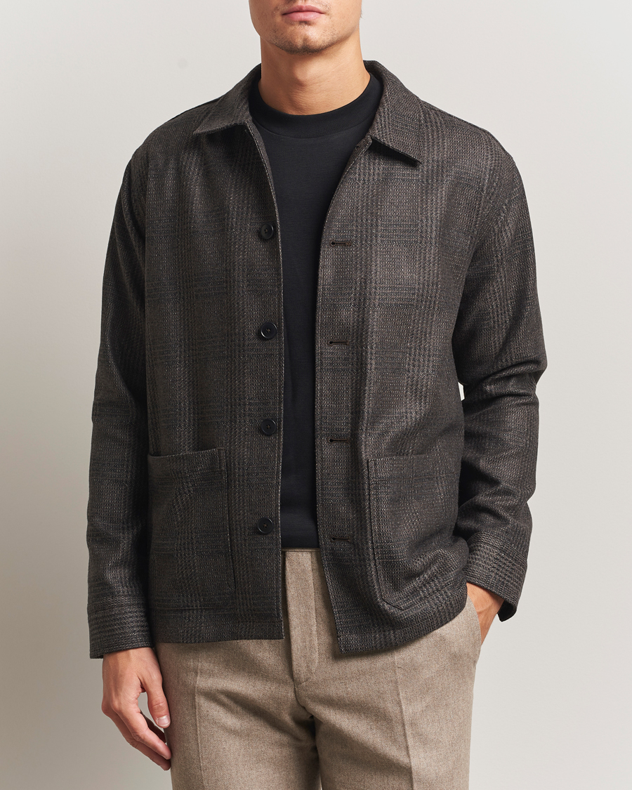 The idea behind this look is not to highlight the tie, but rather to build layers that make the whole ensemble a little more interesting. The overshirt from Zegna doubles-up as a casual jacket, where we keep most of the buttons closed with the exception of the top ones. If you like to keep to earthy tones, it's important to find a balance. A full beige look in the same material will immediately look wrong. You can instead mix materials (cotton, wool, denim etc), fits (slim, boxy and roomy) and even sometimes work with different layers, so the entirety will be more stylistically intact. It is precisely the materials or the model of the clothes that must be the key in a subdued monochrome look, in the same way that an accent colour would have done in a more colourful interpretation.