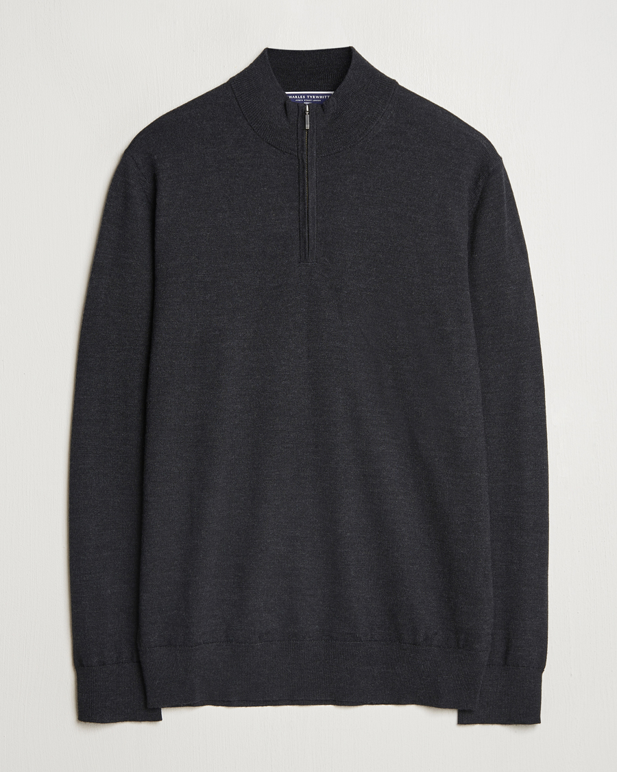Pure Merino Zip Neck Jumper Dark Charcoal