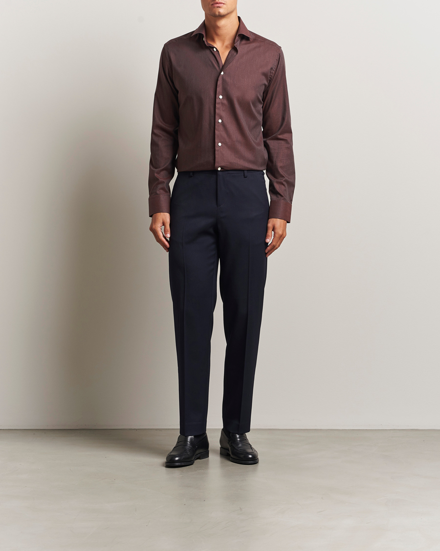 During a routine visit, the then CEO of Eton discovered a crease-resistant material hidden away at one of the company’s suppliers. The material was rather rubbery and utterly unsuitable for dressmaking. The clothing industry as a whole was, perhaps unsurprisingly, sceptical towards this new material, whereas Eton were convinced that therein lay the future of shirt production. Together with a number of textile specialists, this singular material was developed into Eton’s secret formula for non-iron shirts, becoming an immediate success.