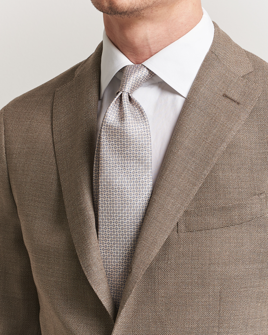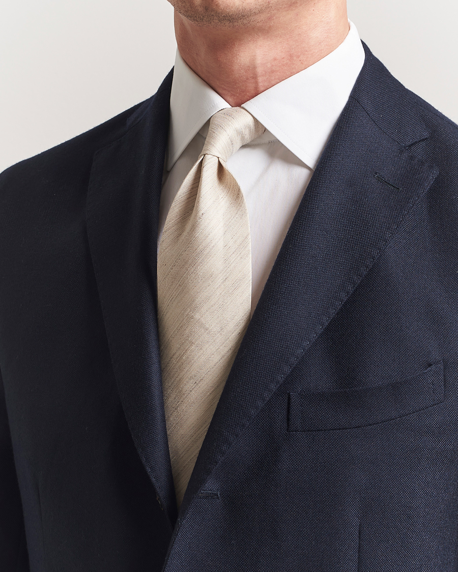 Silk/Linen Floral Tie Beige