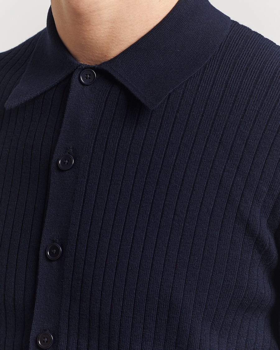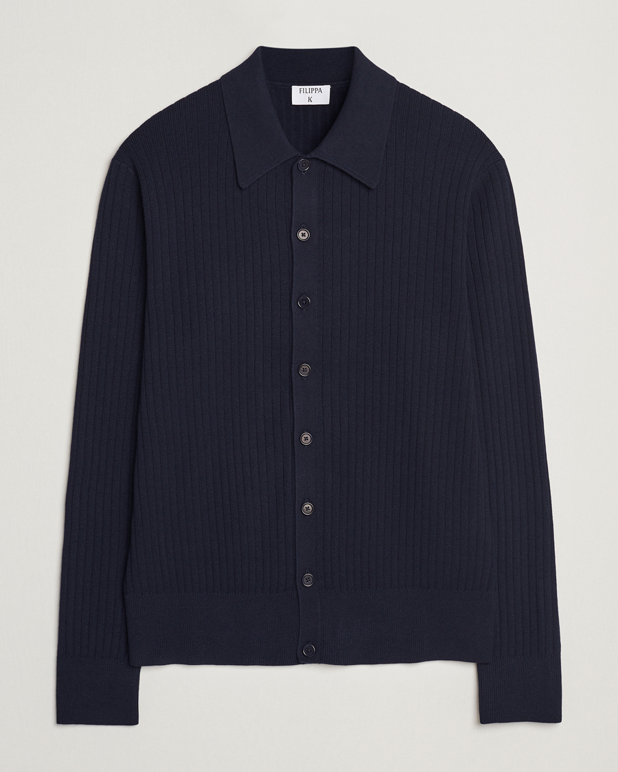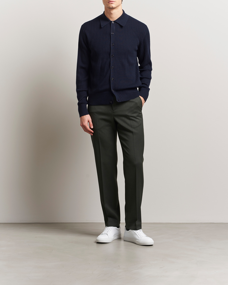 Cotton Merino Knitted Cardigan Navy