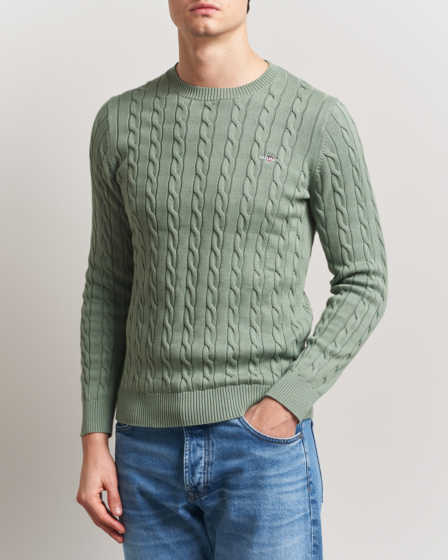 Cotton Cable Crew Neck Pullover Kalamata Green