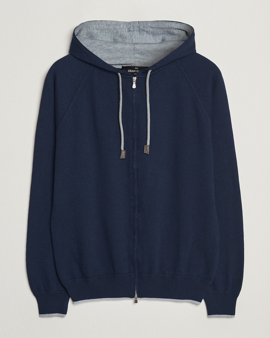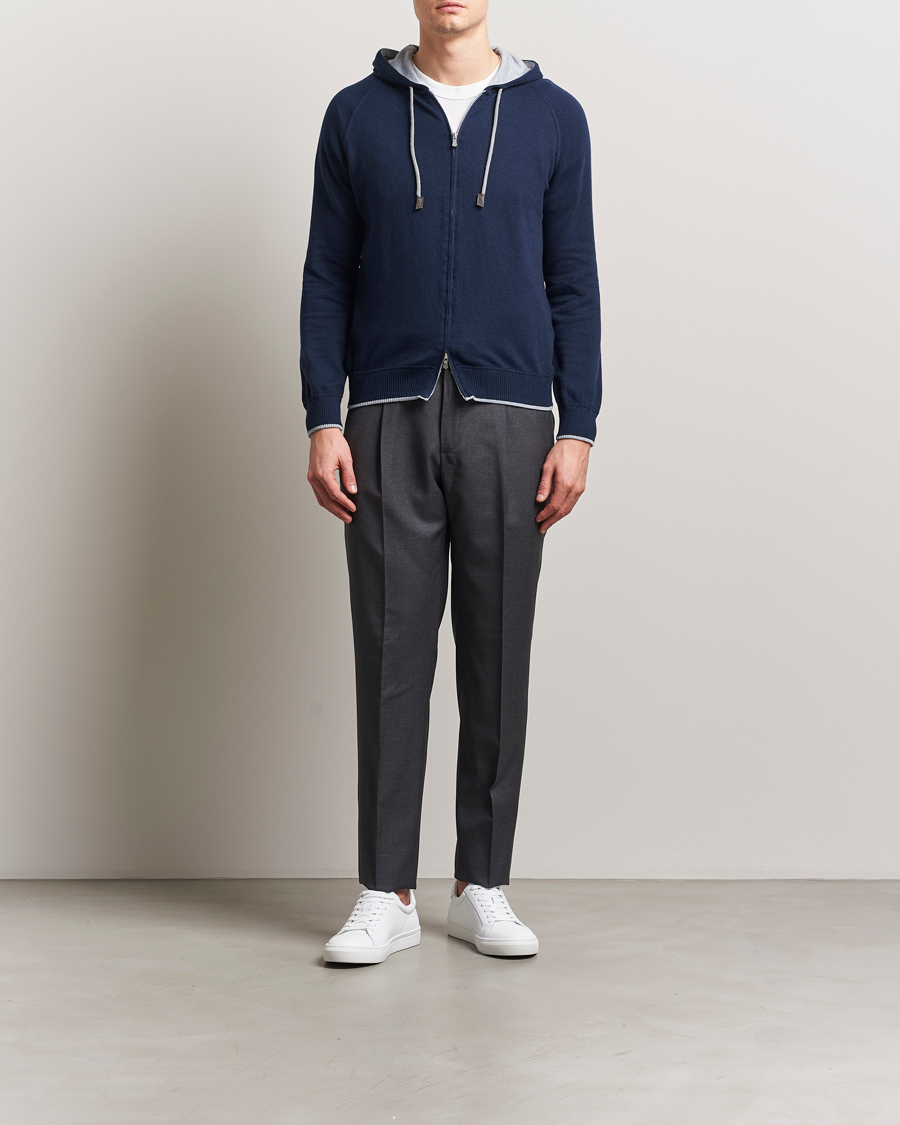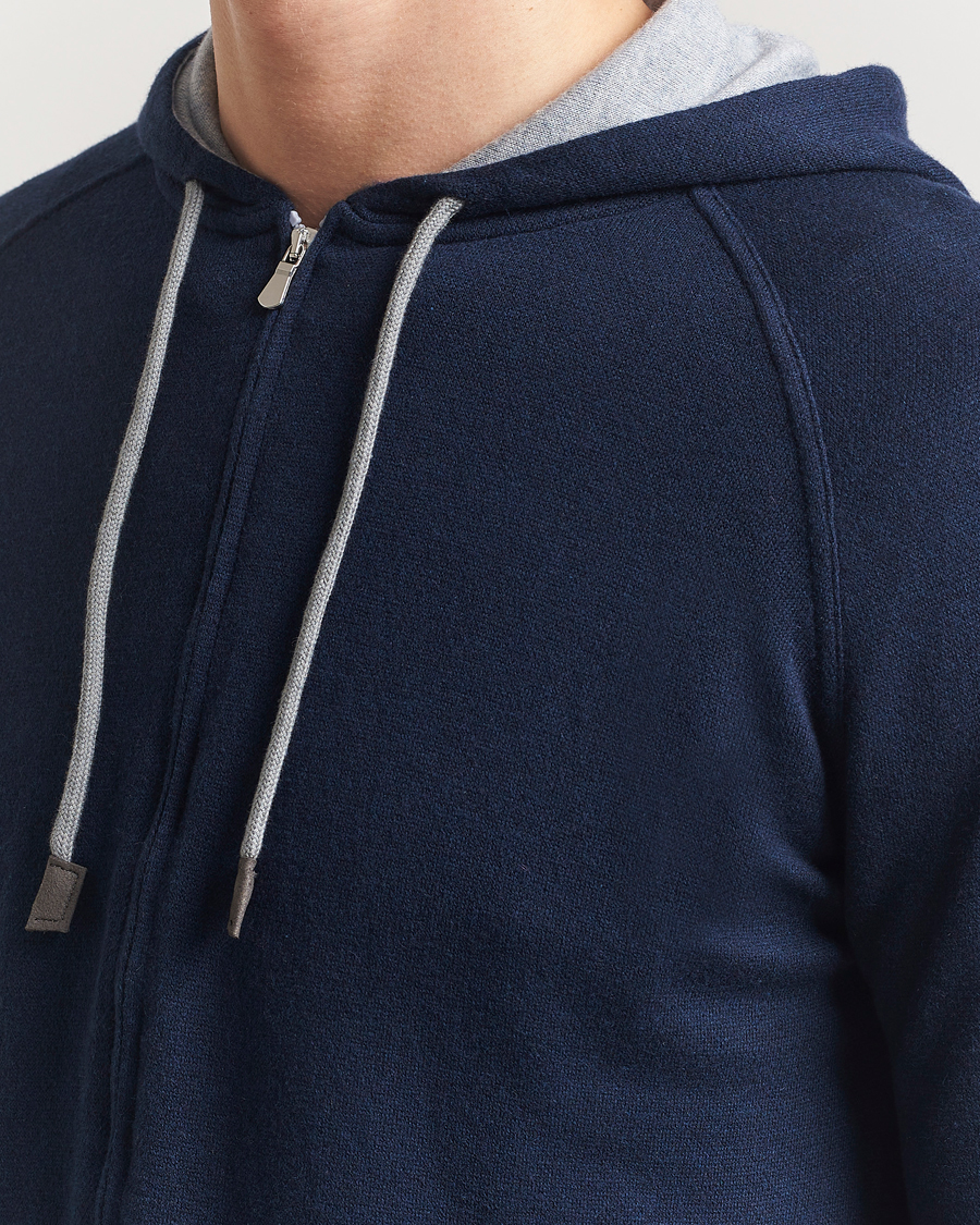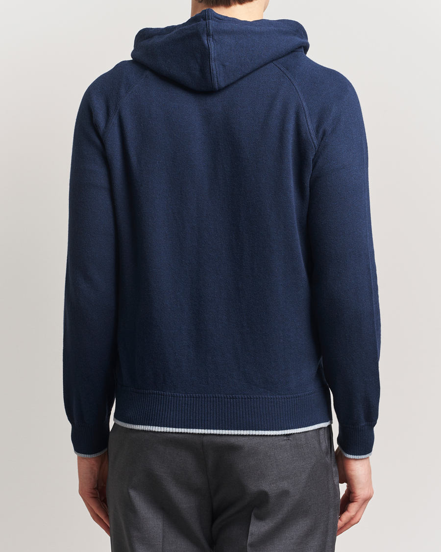 Cotton/Cashmere Knitted Hooded Full Zip Navy