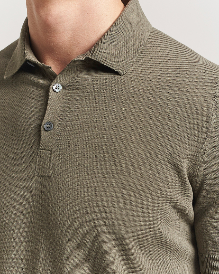 Cotton Knitted Polo Olive Melange