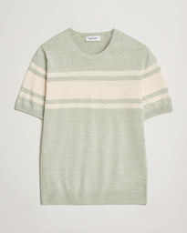 Linen/Cotton Striped Crew Neck T-Shirt Light Green