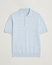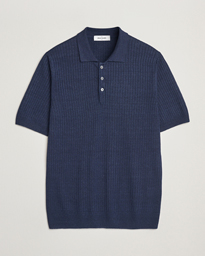 Linen/Cotton Structured Knitted Polo Blue Melange