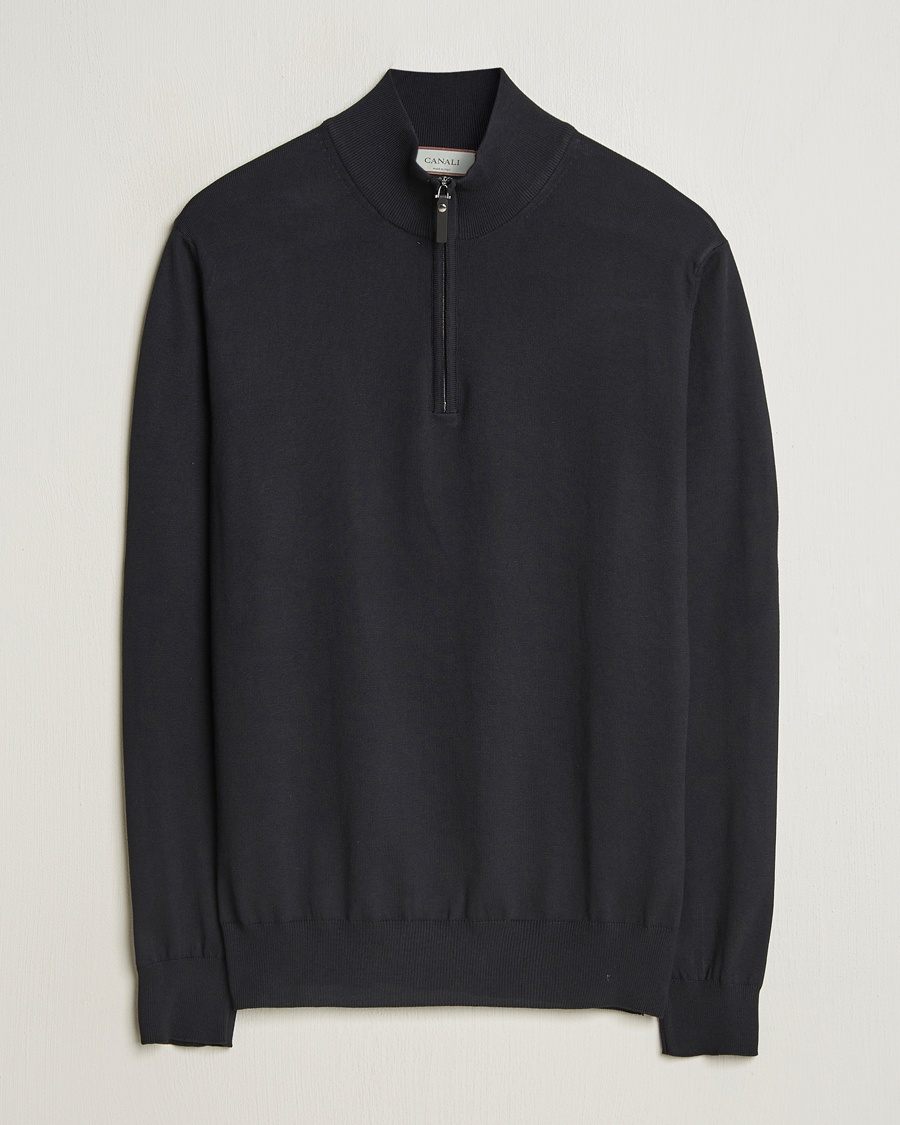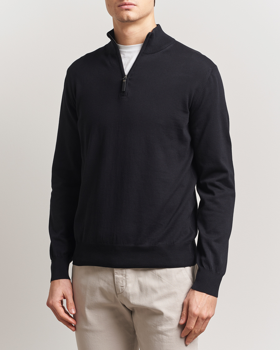 Cotton Knitted Half Zip Black