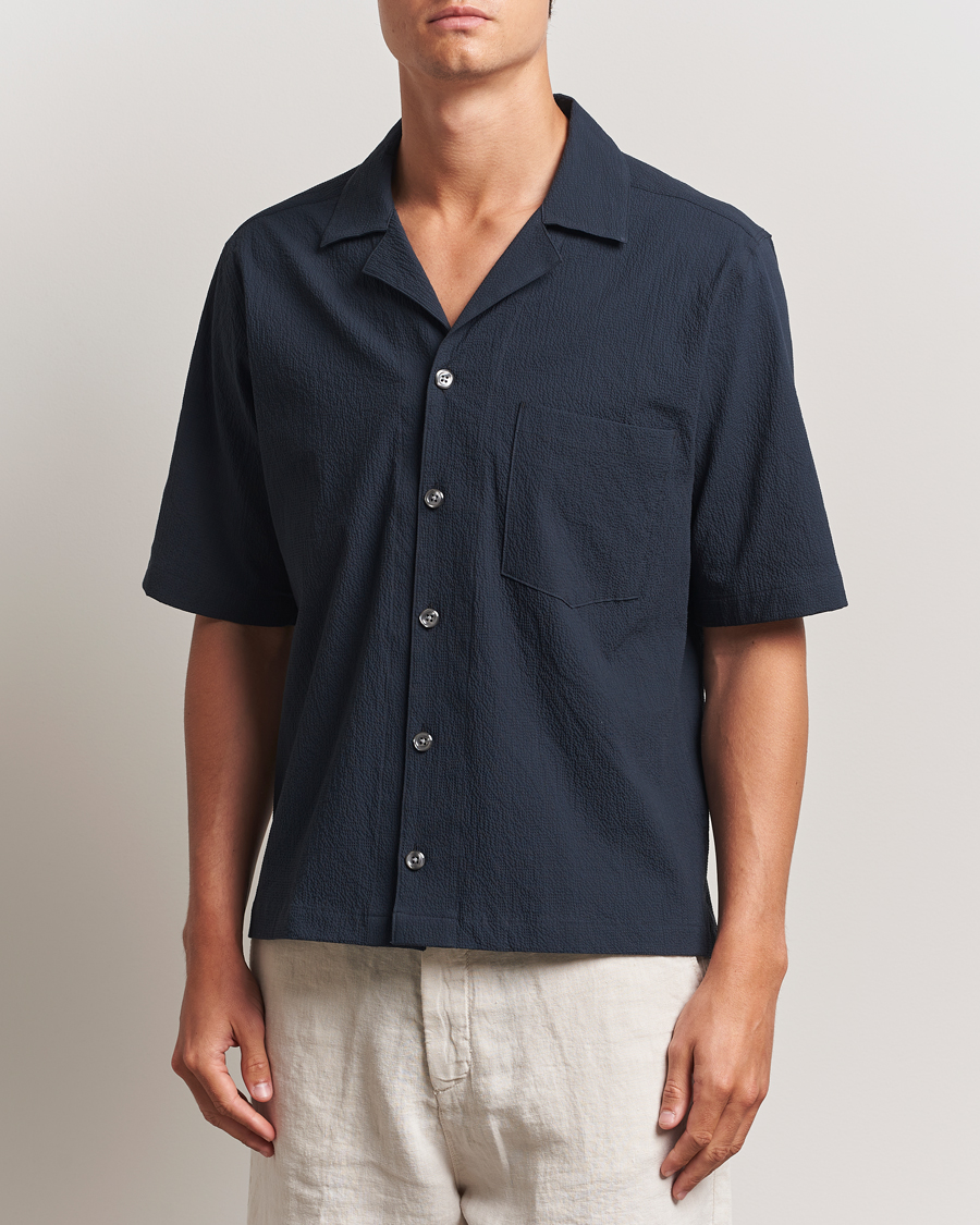 Reg Fit Cuba Seersucker Shirt Navy