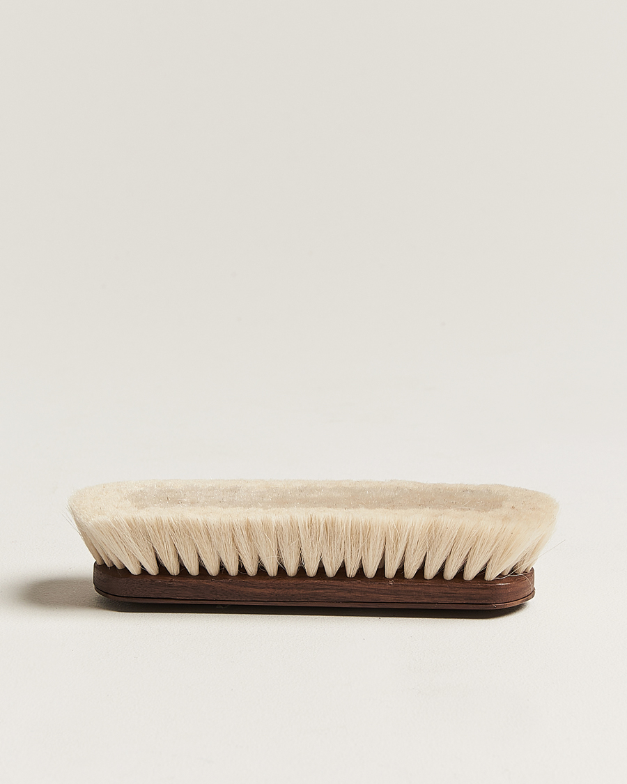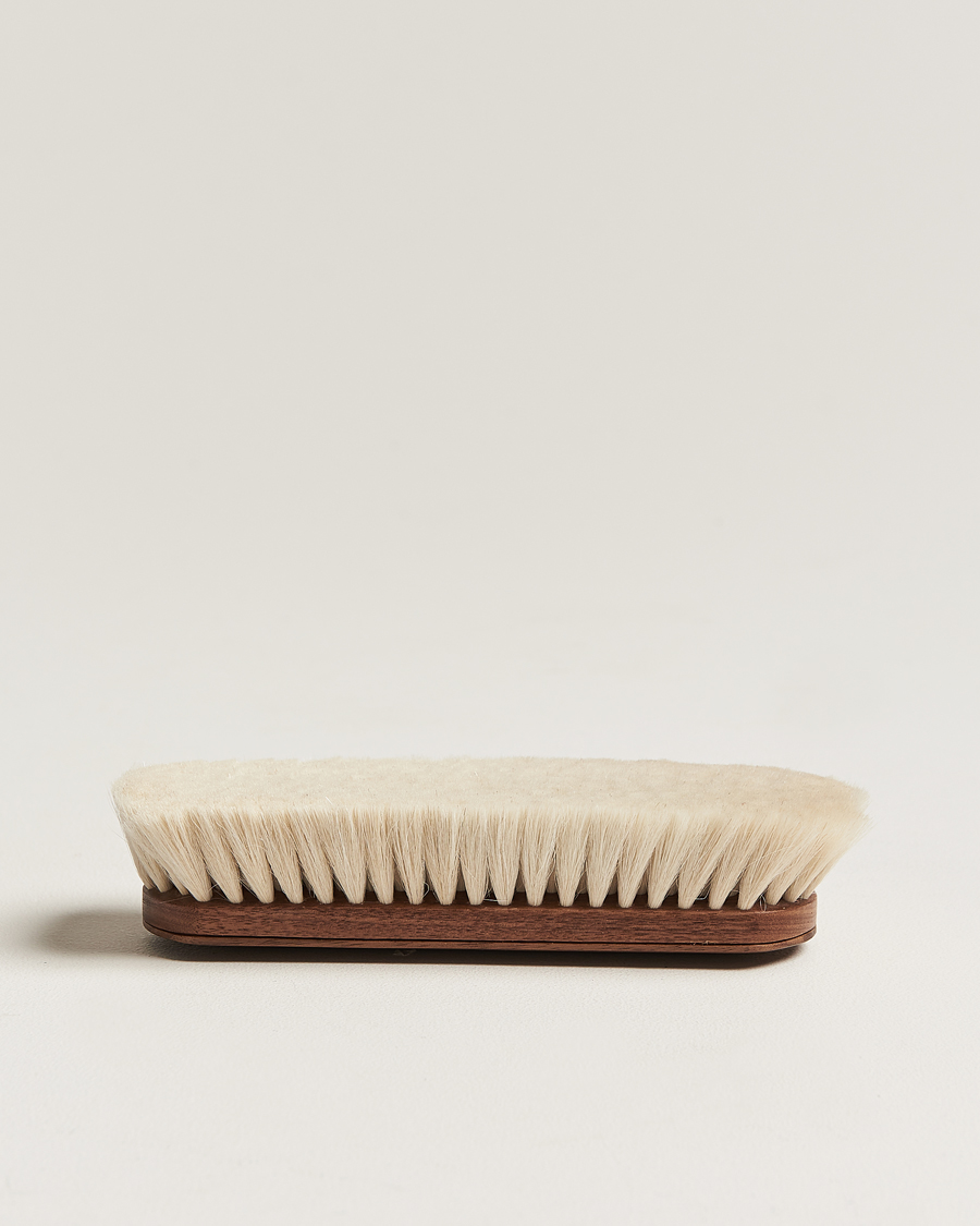 • Integrated magnet on the back for easy storage in "The Social Briefcase" by Paul Brunngård.UsePreferably use the brush after applying and drying shoe polish/shoe wax or to restore an existing polish after use. Brush the upper leather in a linear motion, back and forth, until the leather regains a high shine. Clean the brush by running it back and forth against a clean cloth. Repeat until residual wax/cream is removed. Do not use water on the brush.Product code26015810