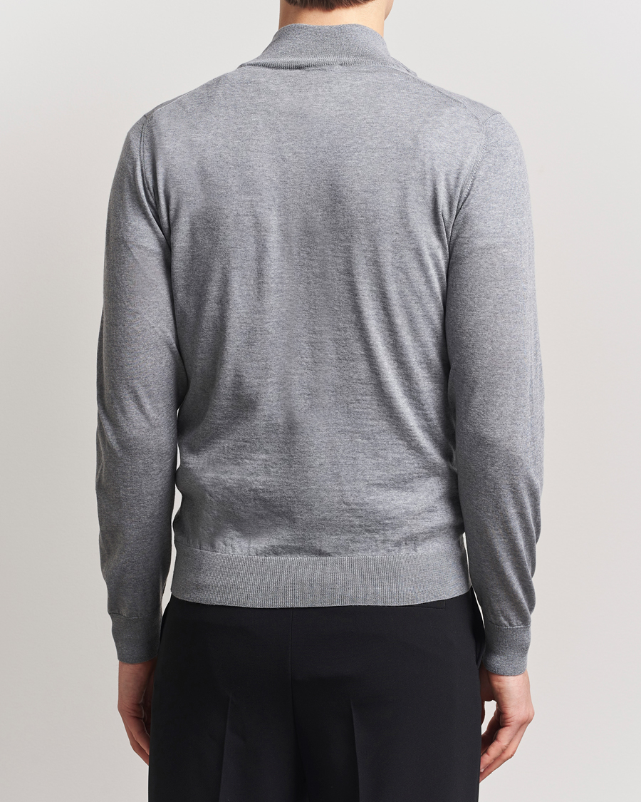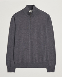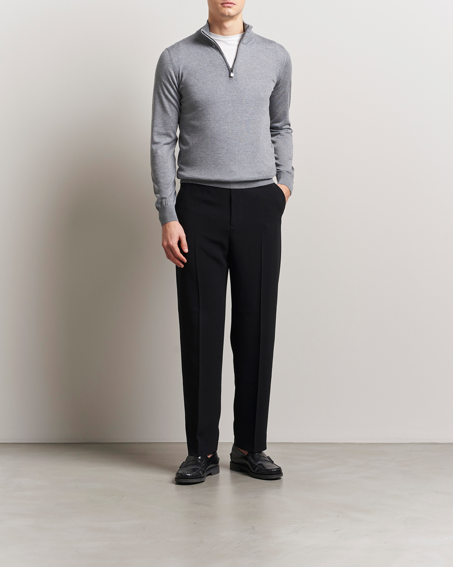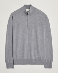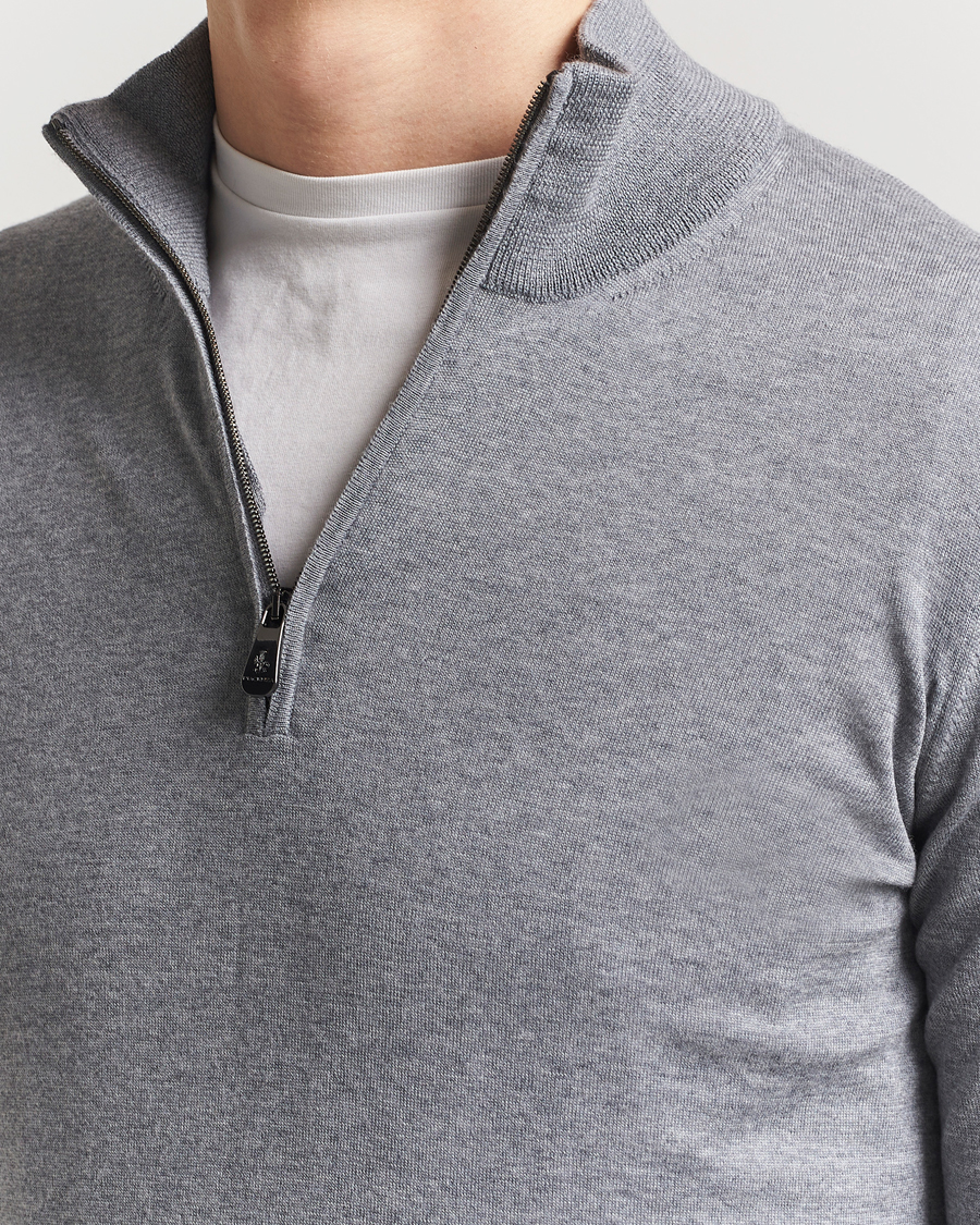 Merino Wool Crew Neck Half Zip Light Grey