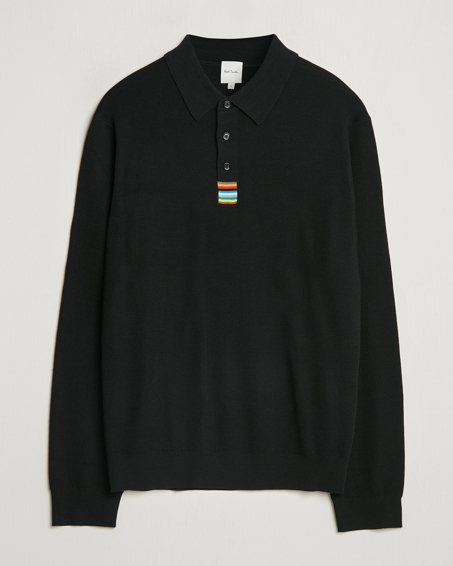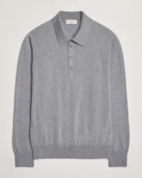 Merino Wool Long Sleeve Polo Light Grey