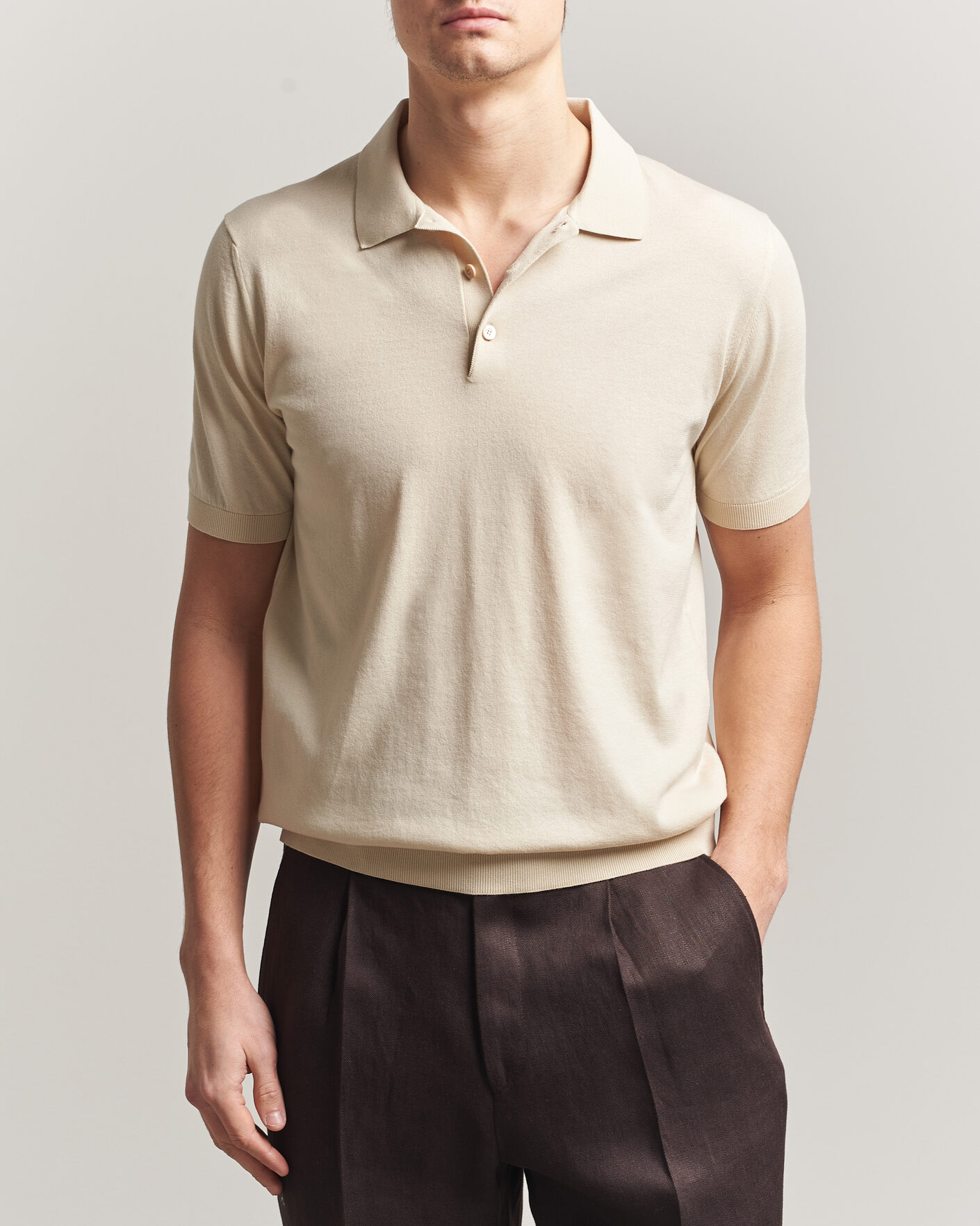 Pedro Tipped Knitted Polo Clear Cream