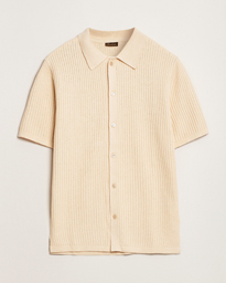 Knitted Buttonthru Polo Shirt White/Blue