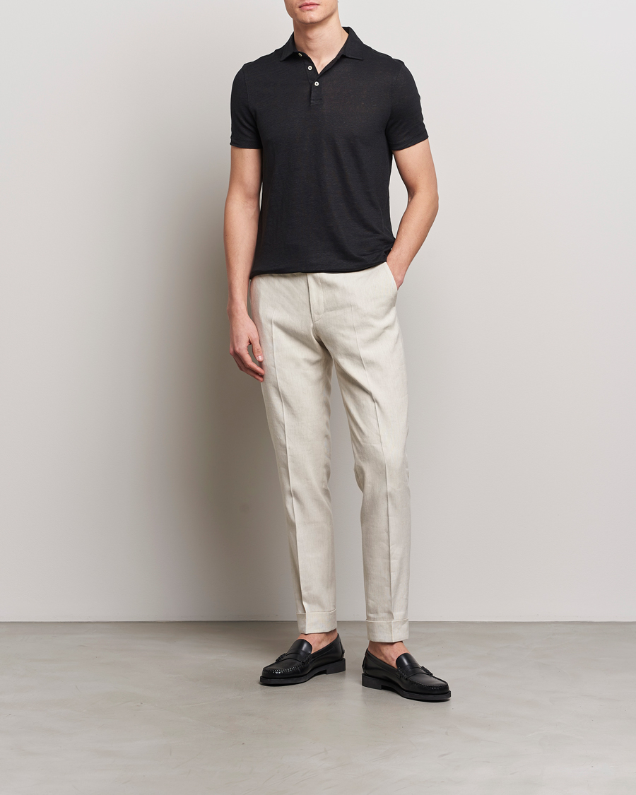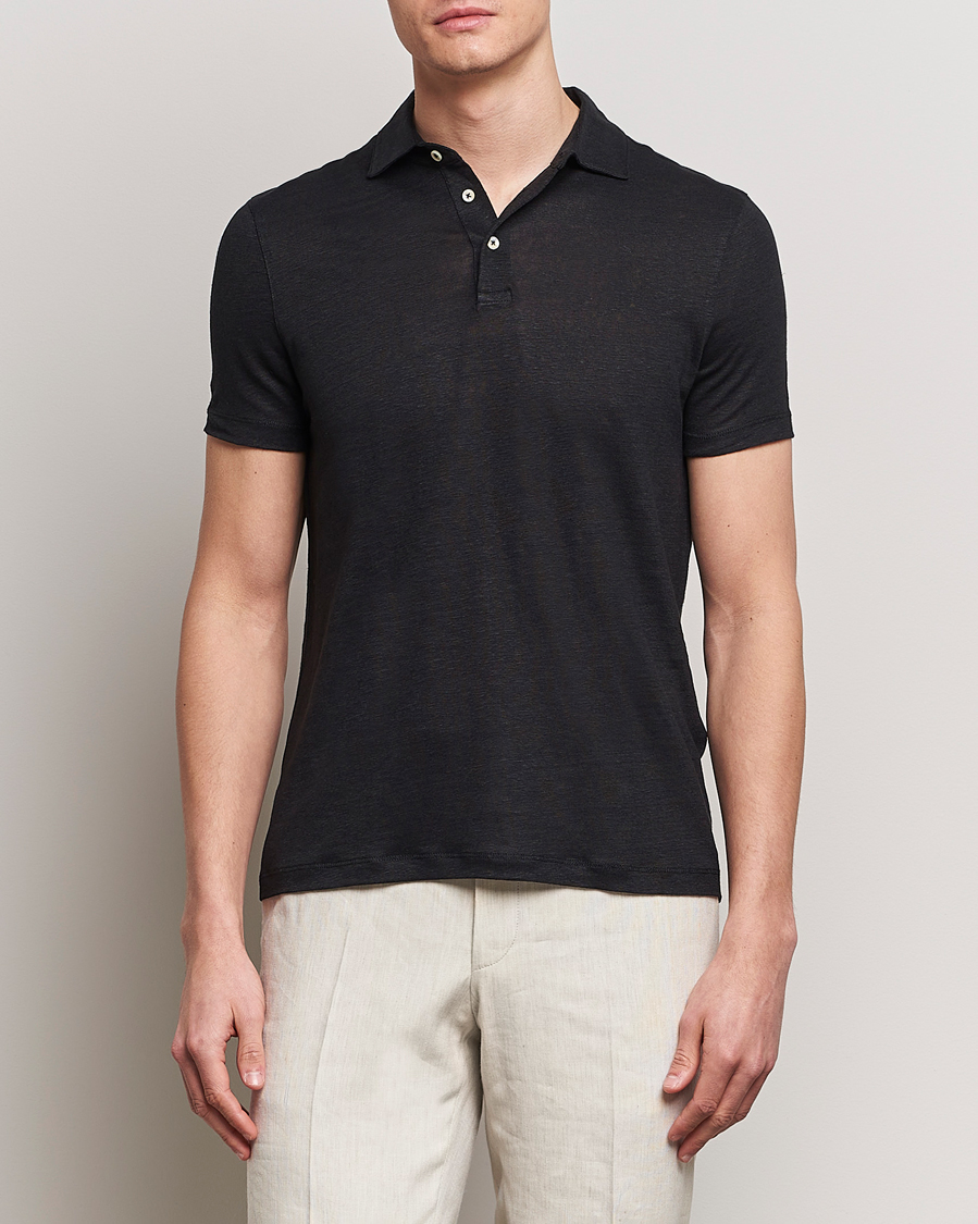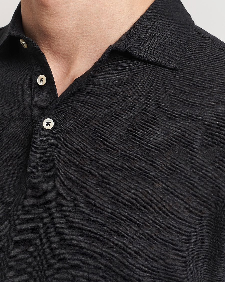 Linen Polo Shirt Black