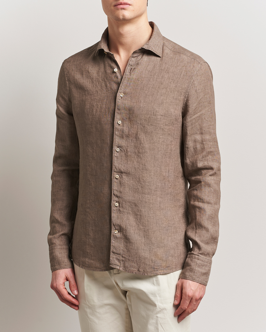 Slimline Cut Away Linen Shirt Brown