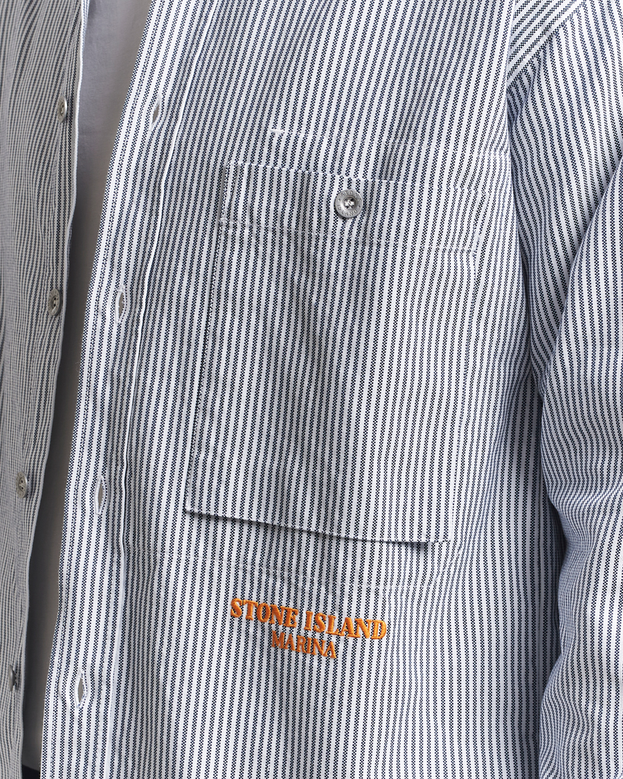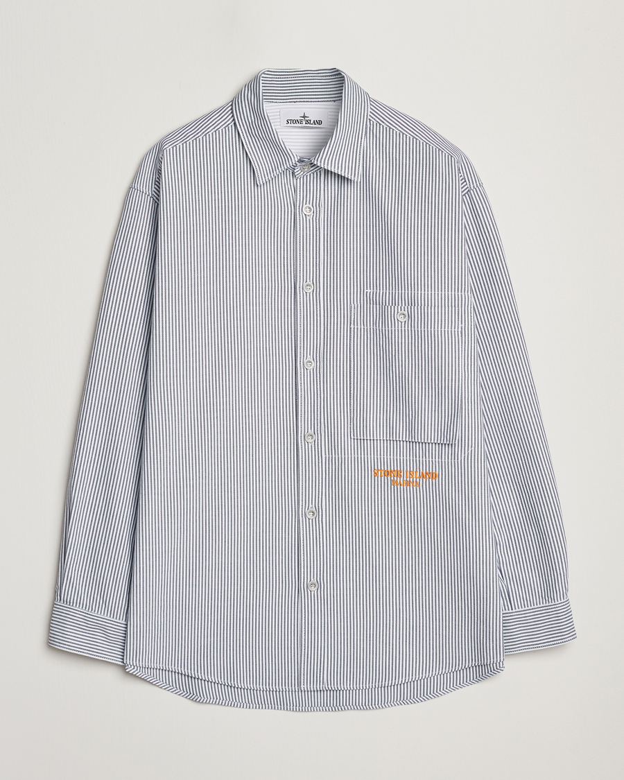 Marina Striped Oxford Cotton Overshirt Blue Marine