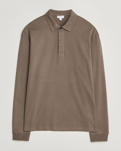 Men | Polo Shirts | Sunspel | Heavy Weight Supima Cotton Long Sleeve Polo Dark Cedar