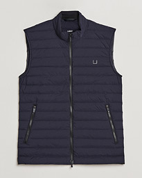 Channel quilted, down gilet with four-way stretch from Norway's UBR. Its dynamic, blended fabric is both windproof and water-repellent while remaining exceptionally light.