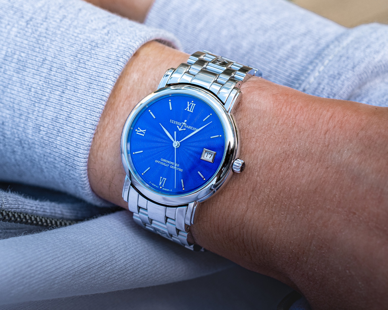 1995 Ulysse Nardin San Marco Blue Flinqué Enamel 133-77-9. Photograph: Tim Vaux
