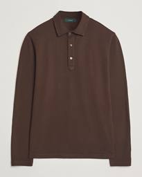 Soft Cotton Piquet Long Sleeve Polo Dark Brown